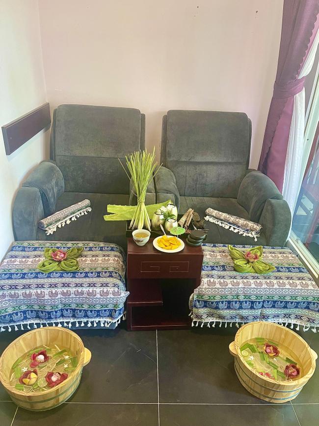 - THAI MASSAGE: là hình thức massage truyền thống của Thái, được massage bởi lực của tay,chân, đầu gối, cùi chỏ để thực hiện các động tác tương tự kéo giãn yoga.